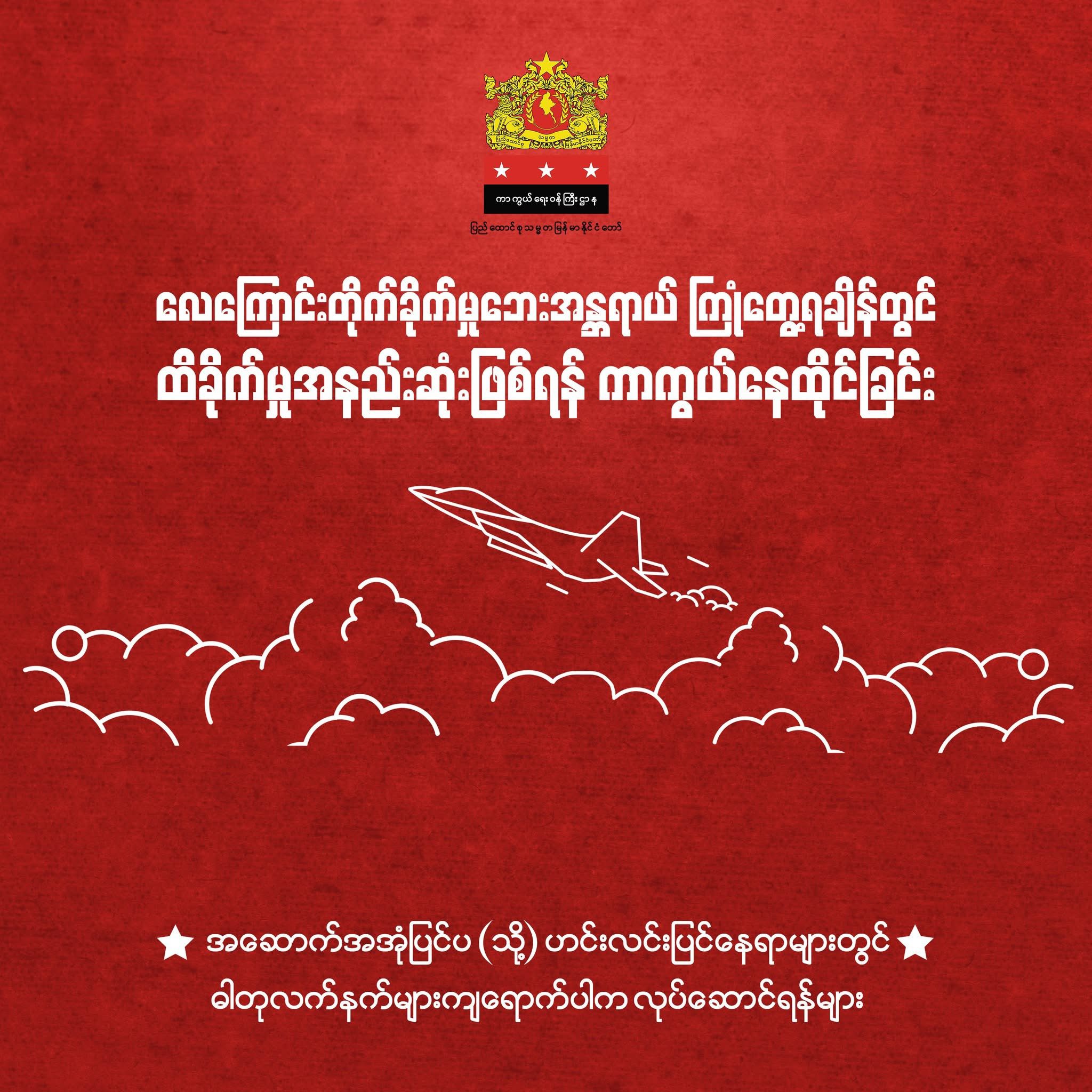 စစ်ကောင်စီသည် အရပ်သားများအပေါ် လေကြောင်းအသုံးပြုတိုက်ခိုက်မှုများ ဆက်တိုက်ပြုလုပ်နေသောကြောင့် အရပ်သားပြည်သူများအနေဖြင့် လေကြောင်းတိုက်ခိုက်မှု ဘေးအန္တရာယ်ကြုံတွေ့ရချိန်တွင် ထိခိုက်မှုအနည်းဆုံးဖြစ်အောင် မည်သို့ပြုမူနေထိုင်ရမည်ကို သိရှိစေရန် ရည်ရွယ်ထုတ်ပြန်ပါသည်။