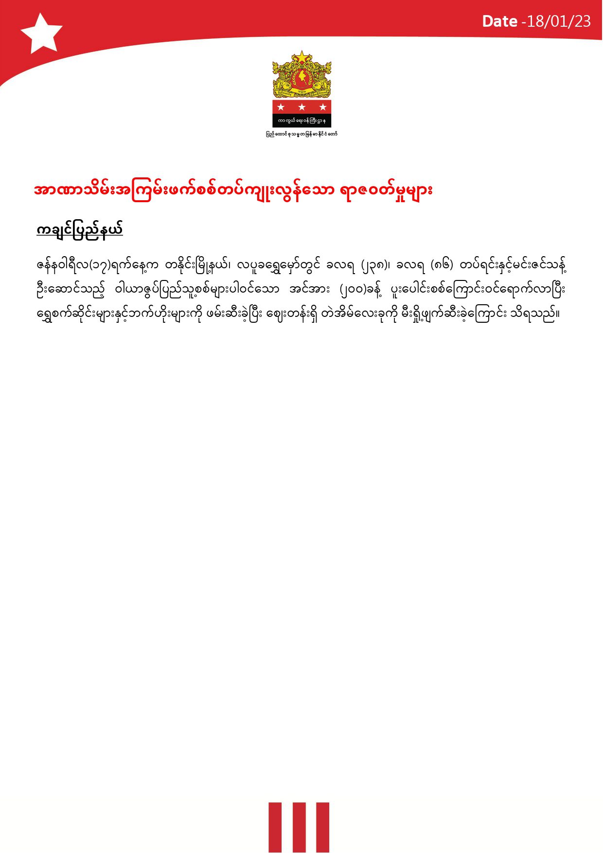 မှတ်ချက်။ ။ မြေပြင်သတင်းတာဝန်ခံများနှင့်သတင်းဌာနများမှ ဖော်ပြလာသော အချက်အလက်များအပေါ် အခြေခံပြုစုထားသည်။