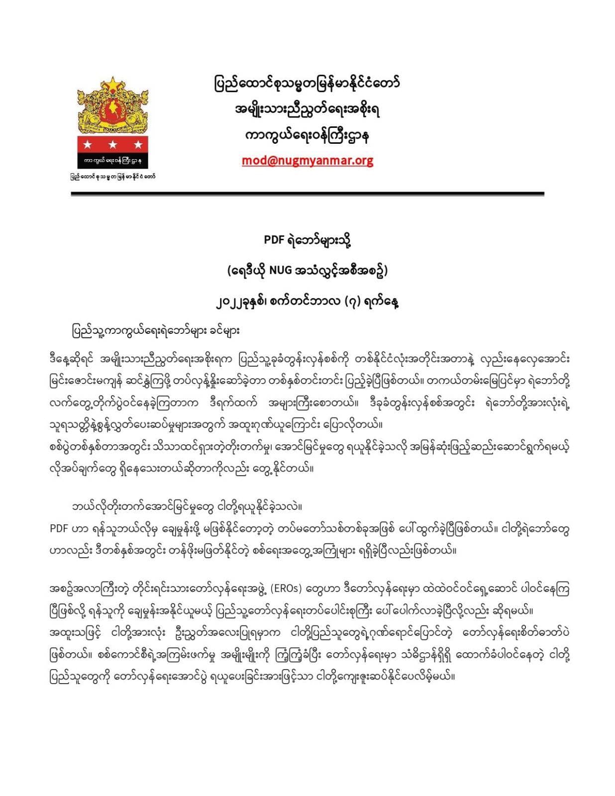 PDF ရဲဘော်များသို့ (ရေဒီယို NUG အသံလွှင့်အစီအစဥ်)